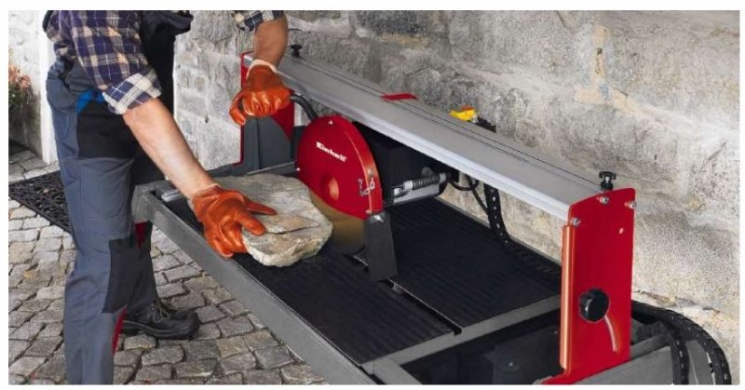 Каменеріз Einhell RT-SC 920 L може використовуватися для точної різки всіх видів бетонних плит, каміння, мармуру і гранітних плит, цегли і плитки різноманітних форм і розмірів. На цьому верстаті можна виконувати просту або подвійну похилу різання. Вбудований насос з охолоджувальною рідиною гарантує, що алмазний ріжучий диск відмінно охолоджується під час роботи. Обертається ріжучий головка дозволяє з легкістю різати заготовки довжиною до 920 мм. Каменеріз Einhell RT-SC 920 L обладнаний лазером, який показує точну лінію різання на матеріалі, з яким буде проводитися робота. Крім того, лазерний модуль, який прикріплений до установки магнітним адаптером, може бути легко знятий і використовуватися як лазерний вирівнювач для укладання підлог і інших подібних робіт.