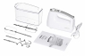 Ручний міксер для збивання інгредієнтів та швидкого замісу тіста. Для зручного зберігання насадок передбачено спеціальний контейнер.
