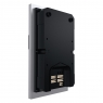 Панель може встановлюватися як зовні, так і всередині приміщення за допомогою врізаного монтажу. Габаритні розміри панелі складають 110 × 185 × 34 мм. Пристрій стабільно працює в широкому діапазоні температур: від -40 до +65° C.