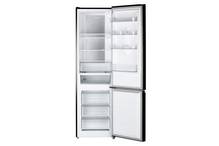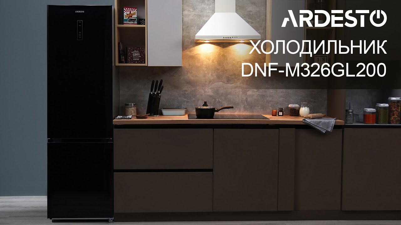 Висота холодильника – 201 см, а ширина складає 59.5 см. Вага – 77 кг. Ручки для відкриття – вбудовані. Плавне освітлення холодильної камери забезпечує система динамічного LED-підсвічування. Скляні двері надають холодильнику досконалий зовнішній вигляд. Ardesto DNF-M326GL200 буде добре виглядати в приміщенні великих розмірів, наприклад у кухні або вітальні.