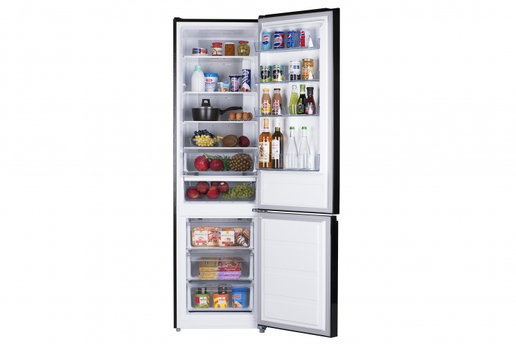 Система No Frost-охолодження ефективно розподіляє потоки холодного повітря по внутрішнім камерам та запобігає утворенню конденсату та намерзань. Загальний об’єм моделі – 316 л, де обсяг холодильної камери складає 240 л, а морозильної камери – 76 л.