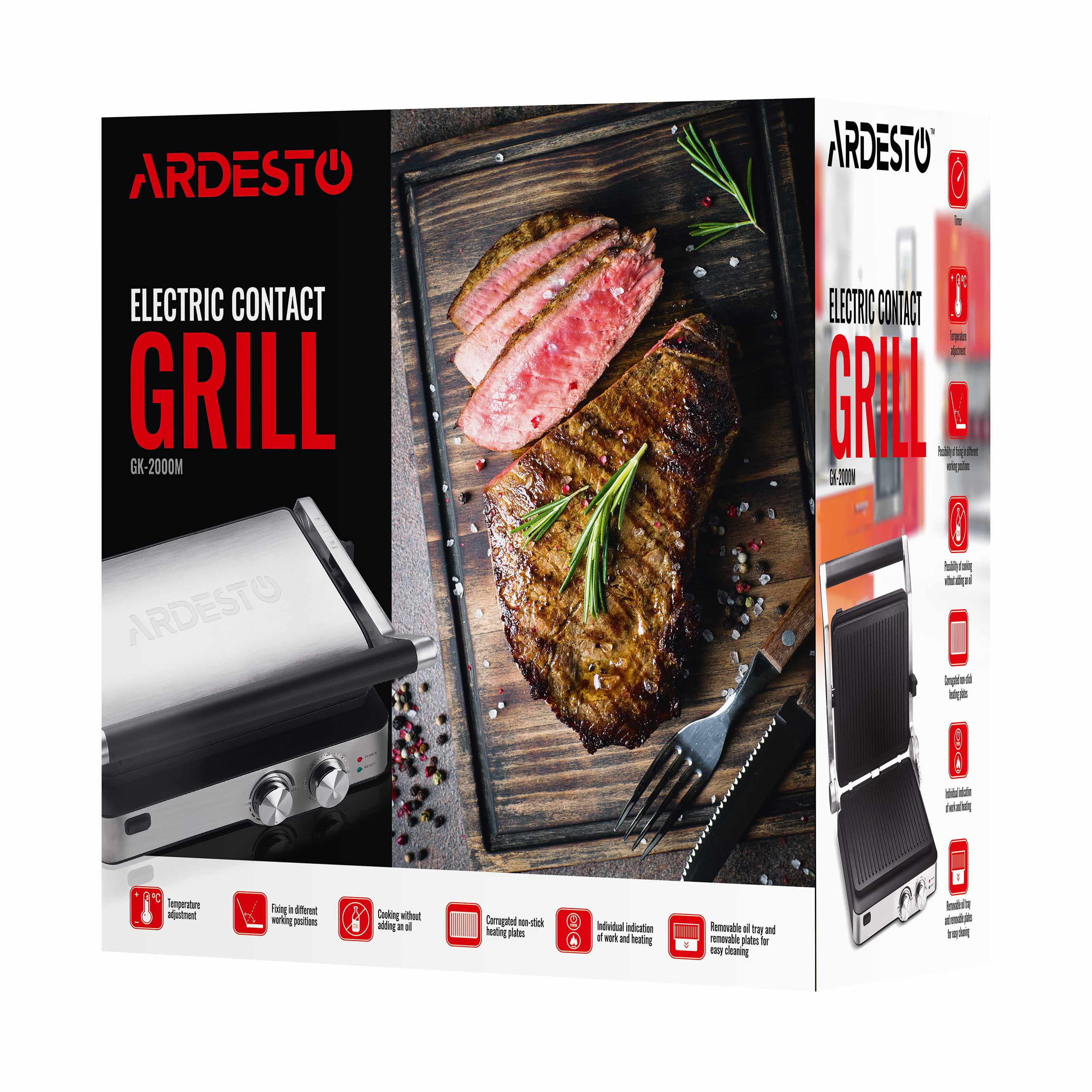 Електрогриль Ardesto GK-2000M з потужністю 2000 Вт підтримує повноцінне регулювання температури, завдяки чому можна з легкістю контролювати ступінь прожарювання. Таймер розраховано до 30 хвилин, а для індикації роботи та нагріву передбачені LED-індикатори.