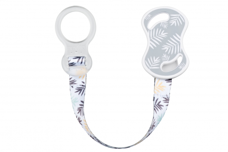 Тримач для пустушки з кільцем від італійського бренда Nuvita, який можна використовувати для немовлят з самого народження. Підходить для ґудзиків-пустушок. Тримач дуже зручний та складається з кільця та фіксатора, які виготовлені з пластику, та текстильної стрічки з візерунком. Безпечний і простий фіксатор кріпиться за принципом прищіпки, та не залишає ніяких слідів на дитячому одязі. Завдяки тримачу для пустушки від Nuvita, малюк не загубить та не забруднить пустушку, адже вона завжди буде надійно закріплена. Не містить бісфенолу А, фталатів та інших шкідливих речовин. Не потребує особливих умов зберігання.