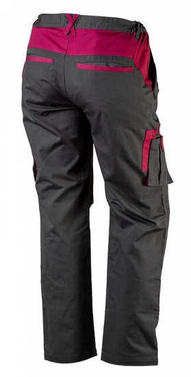 Штани робочі жіночі, 65% бавовна, 35% поліестер, 245 г/м2, багатофункціональні кишені, 2 кишені на заклепках, кишеня на блискавці, кишеня на липучці; бічні резинки, профільовані коліна, модна колірна гамма, сертифікат CE.