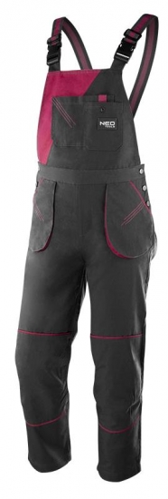 Напівкомбінезон робочий жіночий NEO серії Woman Line з високоякісної бавовняної тканини полотняного переплетення з поліестером. Спеціальна конструкція поясу, еластичні регульовані лямки і жіночий фасон дозволяють ідеально підігнати напівкомбінезон по фігурі. Профільовані коліна з відділеннями для захисних наколінників і місткі кишені значно підвищують комфорт роботи. Завдяки модній кольоровій гамі і сучасному фасону, виріб можна носити і у вільний від роботи час. Якість гарантує європейський сертифікат СЕ. Бренд NEO виправдовує очікування професіоналів.