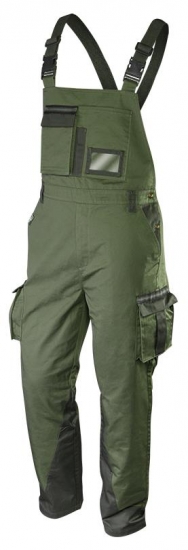 Напівкомбінезон робочий NEO серії CAMO з високоякісної бавовняної тканини з поліестером. Еластичні регульовані лямки і гумка в задній частині пояса дозволяють підігнати напівкомбінезон по фігурі, забезпечуючи, тим самим, комфорт роботи. Завдяки щільним, містким і міцним кишенях, необхідний інструмент можна носити при собі, а додаткові кишені для бейджика і авторучки підвищують функціональність. Завдяки модному оливковому кольору з контрастними вставками і сучасному фасону, штани можна носити і у вільний від роботи час. Якість гарантує європейський сертифікат СЕ. Бренд NEO виправдовує очікування професіоналів.