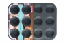 Де купити: Форма для випікання мафінів ARDESTO Tasty baking, 35х26.5х3см, 12шт, вуглецева сталь, сіро-блакитний: