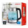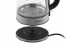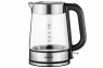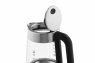 Для комфортного використання є зручна ручка з клавішею відкриття кришки. За включення відповідає окрема клавіша, розташована в нижній частині чайника. Довжина дроту підставки складає 80 см. Робота чайника супроводжується LED-підсвіткою синього кольору. Нагрівальний елемент – прихований.