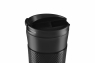 Термочашка на 450 мл з вакуумною технологією зберігання температури – до 8 годин для гарячих напоїв, та 12 годин для холодних. Зовнішня металева частина пофарбована у кольорі тіффані з матовою текстурою. Для зручності передбачено силіконове покриття під долоню. Внутрішня частина виконана з нержавіючої сталі 18/10. Нековзка основа запобігає перевертанню, а пластикова кришка отримала силіконову прокладку та відкидну заглушку.