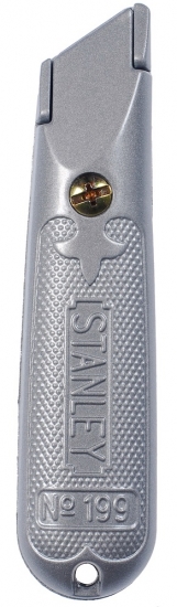 Ніж ”199” з фіксованим лезом. Литий корпус з цинкового сплаву з рельєфною поверхнею для комфортного і надійного захвату. Конструкція носової частини корпусу ”Interlock”: запобігає деформації корпусу навіть при дуже великому бічному навантаженню на лезо. Відсік для зберігання лез в руків’ї. Поставляється з 3-ма лезами.