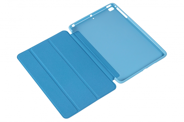 Зовнішня частина обкладинки виконана з високоякісного термополіуретану та екошкіри, а внутрішня – з мікрофібри, яка запобігає появу подряпин та різноманітних пошкоджень. Чохол підтримує два положення: робота/перегляд відео та оснащений функцією Sleep/Wake.