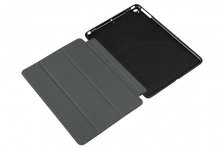 Зовнішня частина обкладинки виконана з високоякісного термополіуретану та екошкіри, а внутрішня – з мікрофібри, яка запобігає появу подряпин та різноманітних пошкоджень. Чохол підтримує два положення: робота/перегляд відео та оснащений функцією Sleep/Wake.