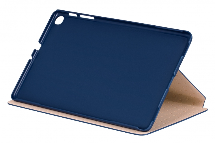 Зовнішня частина обкладинки виконана з екошкіри, внутрішня – з мікрофібри, а фіксатор з полікарборнату. Завдяки спеціальним рельєфним насічках на внутрішній пластикової частині, стенд може бути встановлений в будь-яке зручне положення. Обкладинка фіксується за допомогою магніту.