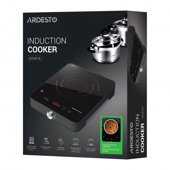 Плитка настільна Ardesto індукційна, конфорок - 1 на 1.8кВт, керування - сенсорне, таймер, чорний