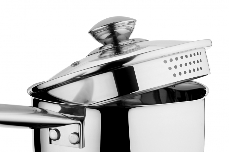 Ківш серії Gemini Lecco виготовлений з нержавіючої сталі. Девайс поставляється з термостійкою скляною кришкою з отвором для пари та сумісний з усіма видами плит, включаючи індукційну.