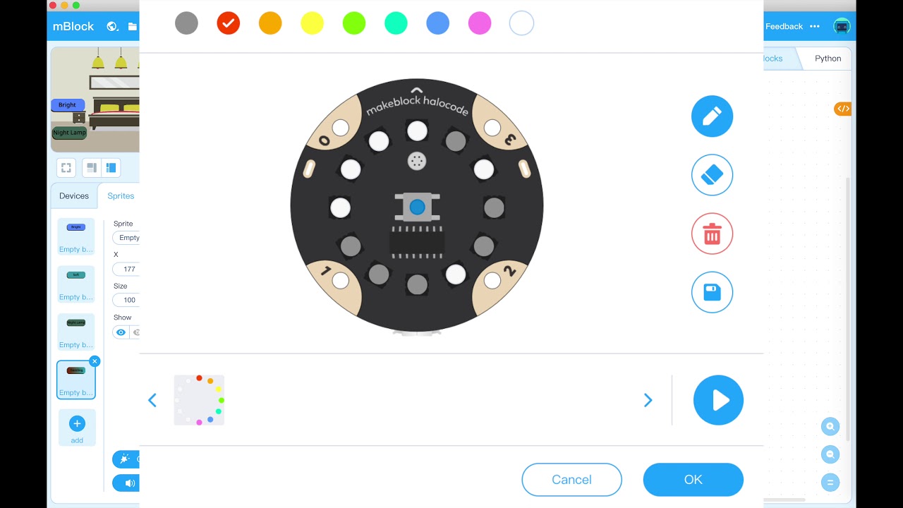З програмою mBlock 5 учні можуть легко створювати інтерактивні програми. Наприклад, повноцінну гру, для якої плата Halocode буде джойстиком. За допомогою вбудованих анімацій можна також створювати оригінальні інтерактивні історії або сюжетні ігри. Виводячи результат своєї програми на плату або робота, навчання набуває наочний і прикладний характер, допомагаючи виробляти інтуїтивне сприйняття програмної логіки.