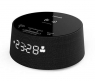 Великий дисплей із цифровим відображенням часу за тканинним обрамленням цього будильника із Bluetooth.