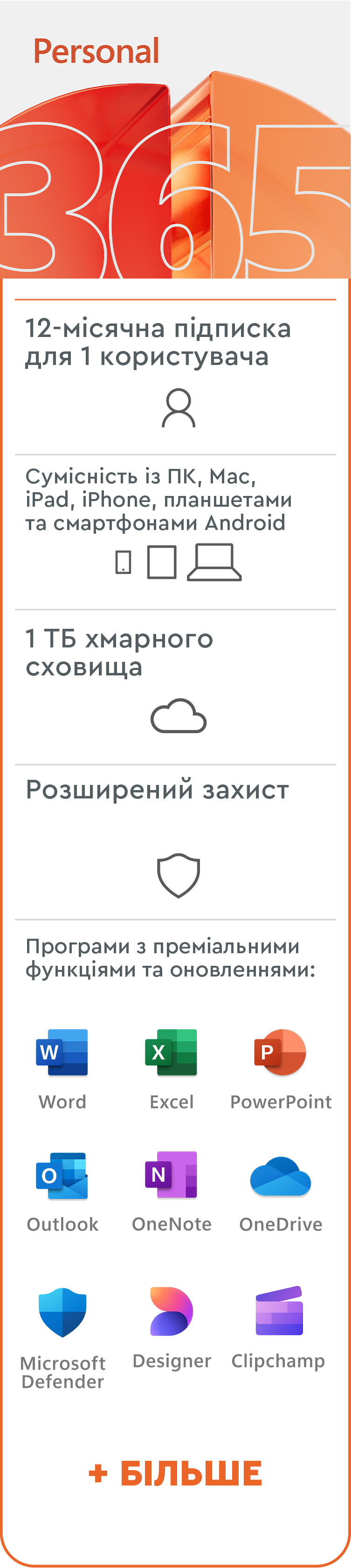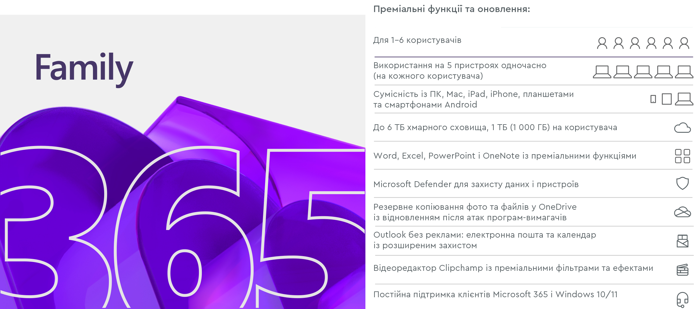 | Можливість установки | на 5ПК /або комп'ютерів Mac, 5 планшетів iPad, Android або Windows і 5 телефонів |