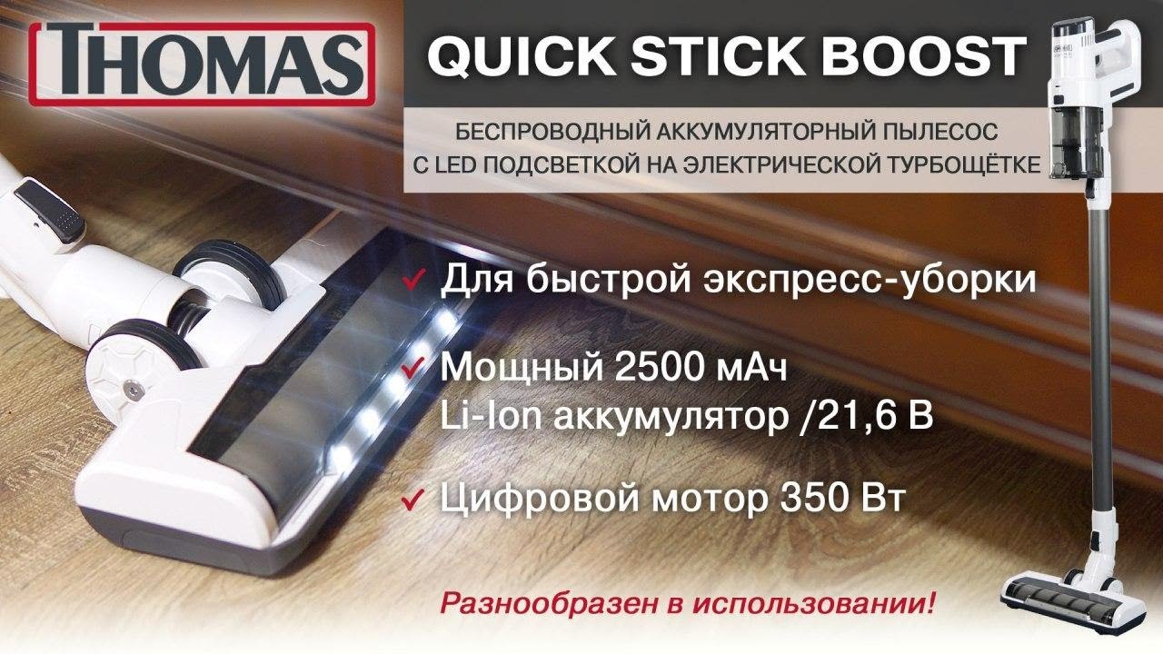 Додати посилання до Пилосос Thomas бездротовий Quick Stick Boost, 350Вт, конт пил -0,5л, автон. робота до 30хв, вага-2,24кг, НЕРА, білий: