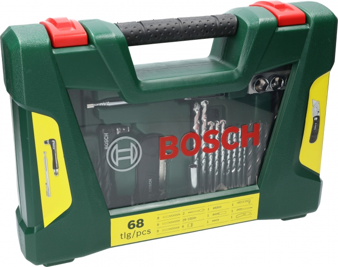 У комплект входять 68 предметів: свердла з твердого сплаву для деревини, цегли та металу, біти різних типів, кишеньковий ніж і магнітний висувний стрижень для зручного підняття дрібних металевих деталей.