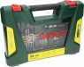 До комплекту входять 91 предмет: свердла з TiN-покриттям для металу, деревини та цегли, біти для шурупів, викрутка з тріскачкою, магнітний висувний стрижень і надійний пластиковий кейс.