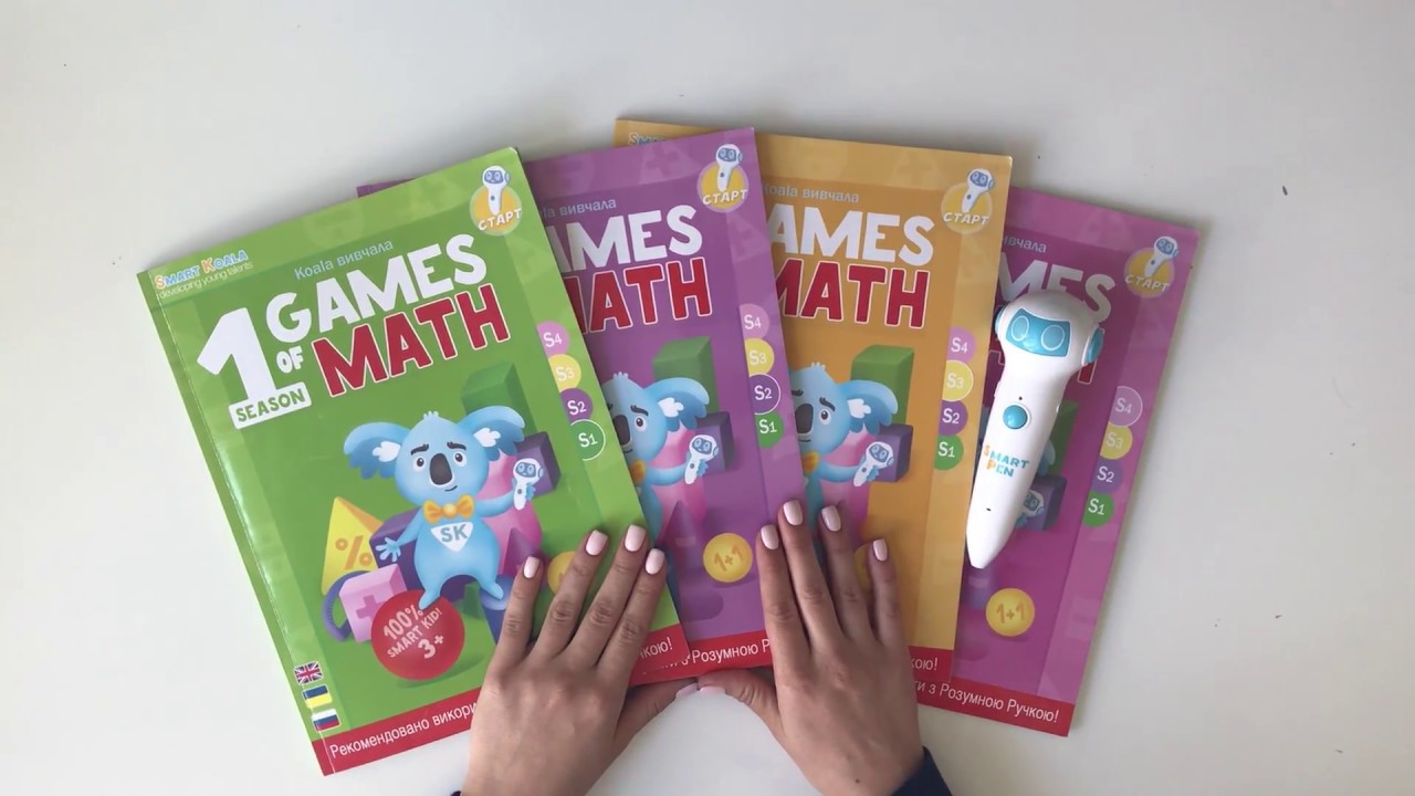 Ігри математики: сезони 3-4- складаються з 70 математичних уроків в кожній книзі; 200 ігор на обчислення, пам'ять, логіку; до 80 завдань для обговорення, аудіо супровід англійською, українською, російською мовами. Рекомендується використовувати з Розумною Ручкою.