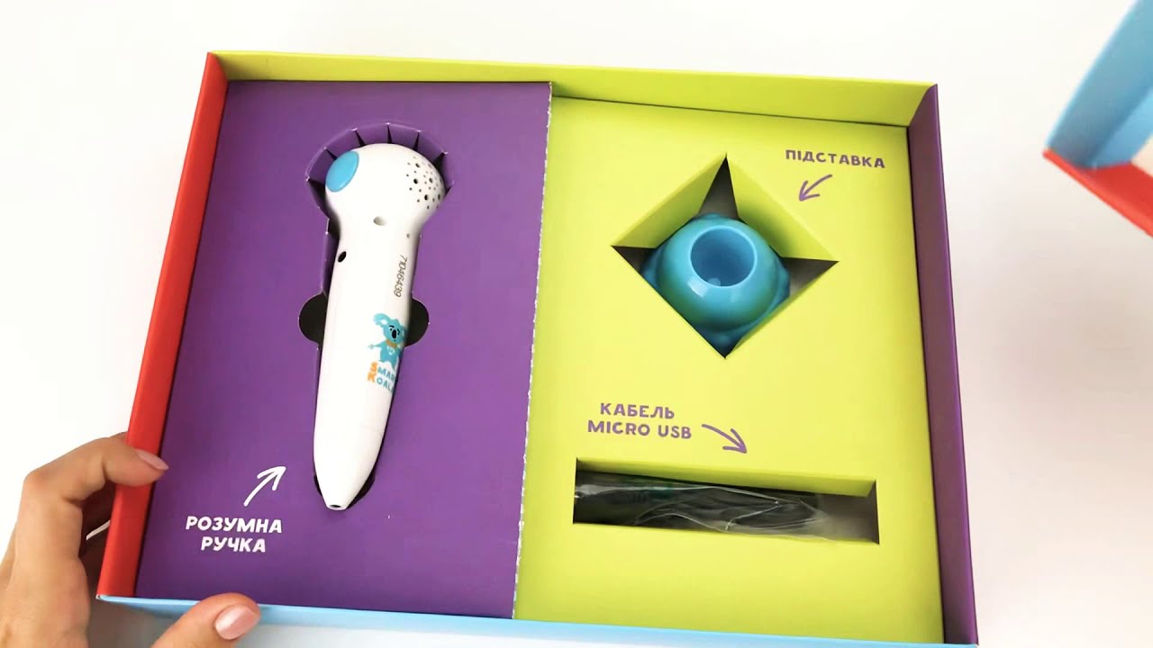 Стартовий набір Smart Koala — Розумна Ручка + демо-книга «Коала пізнавала» (3 уроки). Оновлений процесор, 8 ГБ пам’яті та потужний динамік; ручка безкоштовно озвучує всі книги Smart Koala (потрібно лише завантажити файл). Сумісна із серією Smart Koala English 1–3: 600 слів, 500+ фраз, 20 сцен і 50 ігор; голоси носіїв EN/UA/RU. Від 2 років.
