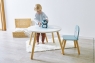 З цим дерев'яним столом і двома стільцями в м'яких тонах діти можуть малювати і грати за своїм бажанням. Стільці адаптовані під розмір дітей від 3 років. У центрі столу держатель для олівців дозволить вам зберігати ручки і олівці. Змінний тримач олівця надається. Олівці не включені.