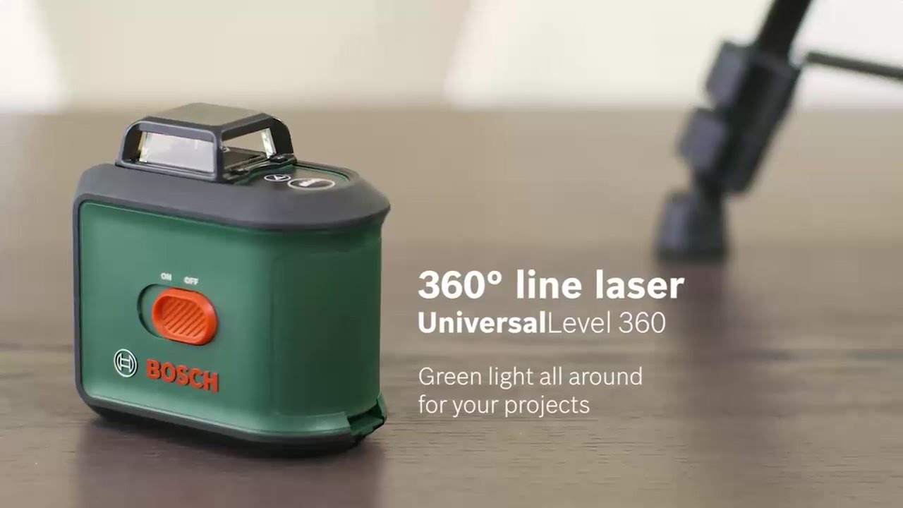 Universal Level 360, що забезпечує чудову видимість для високоточного вирівнювання по всьому приміщенню, є зразком інструмента, що поєднує в собі точність, універсальність і зручність використання. Самонівелююча проекція горизонтального лазерного променя на 360° і вертикального променя на 120° забезпечує зручне і швидке вирівнювання, а технологія зеленого лазера забезпечує кращу видимість для комфортної роботи навіть при яскравому освітленні. Необхідно вирівняти по висоті підвісні стелі або карнизи? Потрібно вирівняти предмети, такі як полки і картини по заданому орієнтиру? Або доведеться фігурна укладка плитки? Продовжуйте роботу і дайте волю своїй креативності з функцією нахилу, що дозволяє працювати з діагональними лініями.
