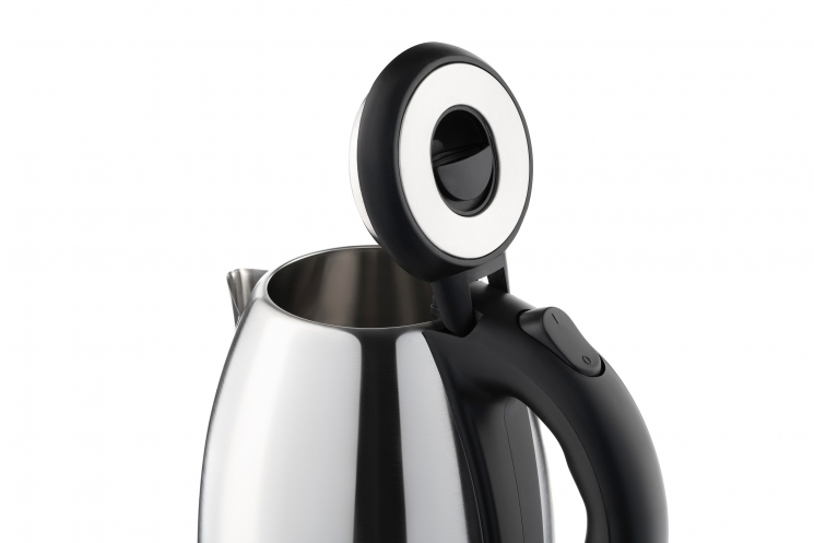 Для відкриття кришки є зручна ручка, а за включення відповідає окрема клавіша. Довжина дроту підставки складає 60 см. Нагрівальний елемент – прихований. Його ефективне розташування разом з потужністю у 1500 Вт забезпечує швидке досягнення заданої температури. Для безпечного використання передбачено автоматичне відключення після закипання та при відсутності води.