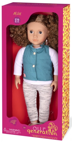 Міла – представляє колекцію неймовірних ляльок Our Generation. Вона виглядає як справжня дівчинка. У неї довге кучеряве каштанове волосся. Тому дівчата із задоволенням можуть розчісувати їх і укладати в зачіски. Міла любить гуляти просто неба. В її гардеробі є сорочка з довгими рукавами, жилет на ґудзиках, декілька зручних футболок і гарні повсякденні легінси.