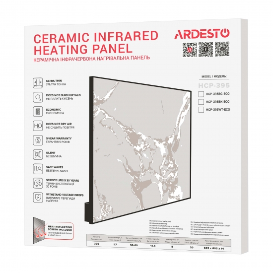 Магнезитова плита забезпечує якісну та безпечну передачу інфрачервоних теплових хвиль через керамічну поверхню, що забезпечує максимальну віддачу тепла у приміщення. Цей ефект посилюється тепловідбивним екраном, що поставляється в комплекті. Холодне повітря, проходячи через електропанель, також нагрівається і температура в кімнаті швидко стабілізується.