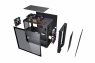 Корпус адаптовано під можливість монтажу системи рідинного охолодження на передню панель - радіатори 120/240мм, задню – один 120 мм та верхню - 240мм, додатково передбачено простір для акуратного розміщення кабелів. На верхній панелі – знімний пиловий магнітний фільтр. Для підключення, керування і контролю комп'ютерною периферією та підсвіткою в арсеналі корпусу є роз'єми 1xUSB 3.0,2xUSB 2.0 HD AUDIO+MIC, кнопки і індикатори Power, Reset, Power LED, HDD LED, додатково HUB. У комплектацію моделі включені інструкція і набір кріпильних елементів.