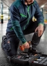 Робочі штани PREMIUM, основна тканина 62% бавовна, 35% поліестер, 3% еластан, щільність 270 г/м2; трикотаж в рубчик 92% бавовна, 8% еластан, вага 360 г/м2, посилення Cordura®, матеріал з еластаном для підвищення комфорту роботи, еластичні вставки з боків для кращої посадки, посилення Cordura на колінах, багатофункціональність, місткі кишені, кишеня для колін накладки, профільовані коліна, світловідбивні принти, вставка з внутрішнім ім'ям, унікальний власний дизайн, сертифікат CE, розмір L.