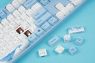 Клавіатура Varmilo VA108M Sea Melody має оригінальний дизайн в біло-блакитних тонах і нанесений на клавішу пробіл малюнок кита. Ковпачки виготовлені з високоміцного пластика PBT із застосуванням dye-sublimation технології з вигравіруваними символами на боках, використання dye-sub дозволяє символам ніколи не стертися і ніяк не відчуватися при натисканні, а якісний PBT пластик гарантує надійність і довговічність, клавіші мають злегка текстурований верх і приємні на дотик.