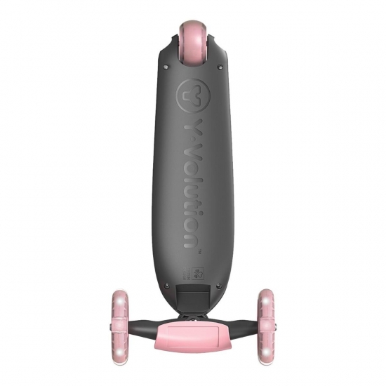 Колеса виготовлені з PP матеріалу, вони світяться під час їзди завдяки LED-підсвічуванню. Розмір передніх - 120 мм, задніх - 70 мм. До того ж заднє колесо виконано широким для більшої устойчівості. Завдяки такому функціоналу YVolution Kiwi, напевно, кращий перший самокат дитини.