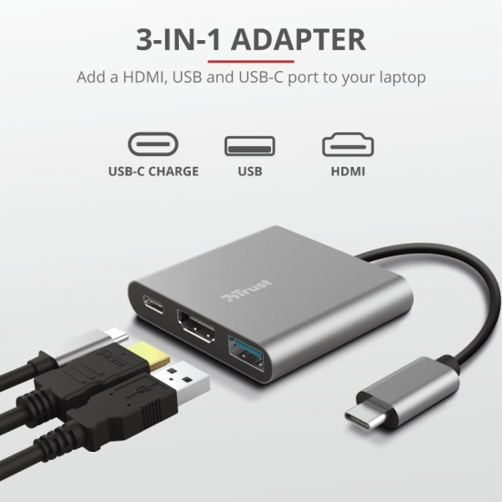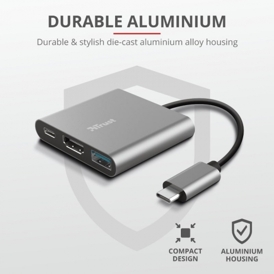 Опис Хаб Trust Dalyx 3-in-1 USB-С > USB-А 3.2/USB-С/HDMI, Алюміній, 0.1м, чорний
