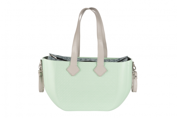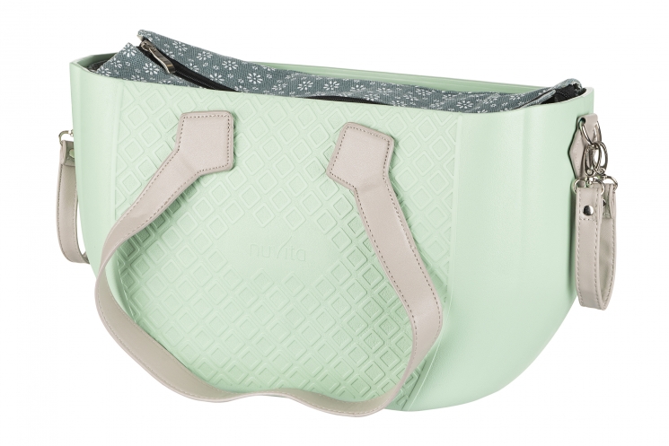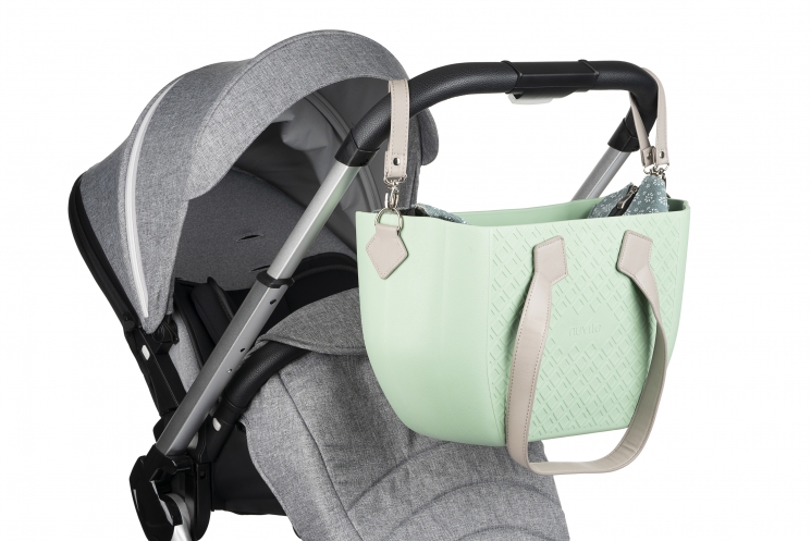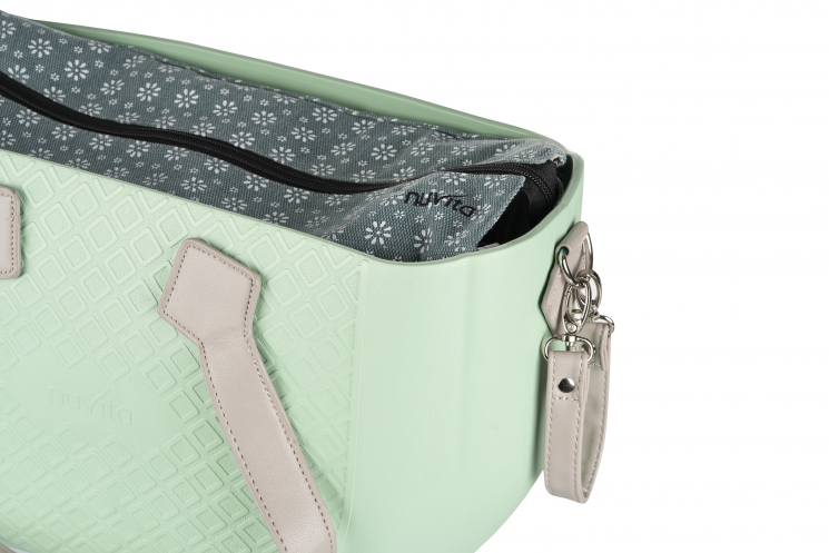 Опис Сумка Nuvita MyMia ручки еко-шкіра, килимок, ремені для коляски, м'ятно-сірий