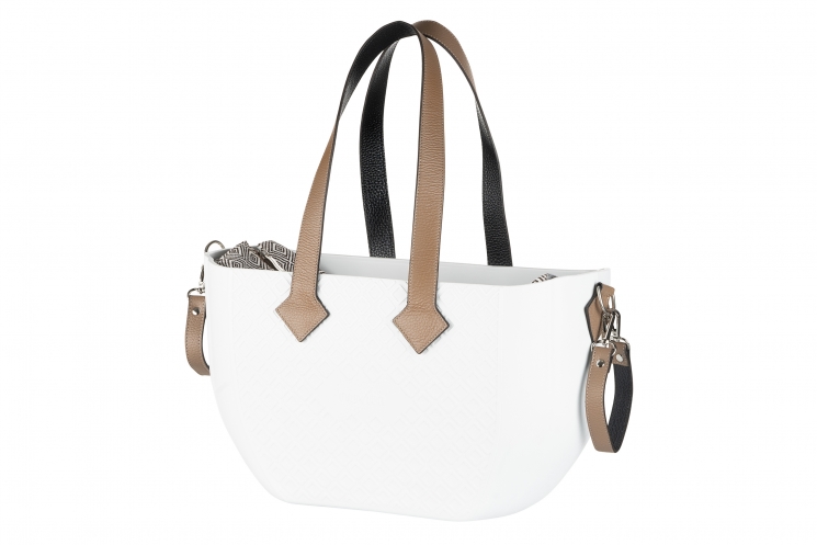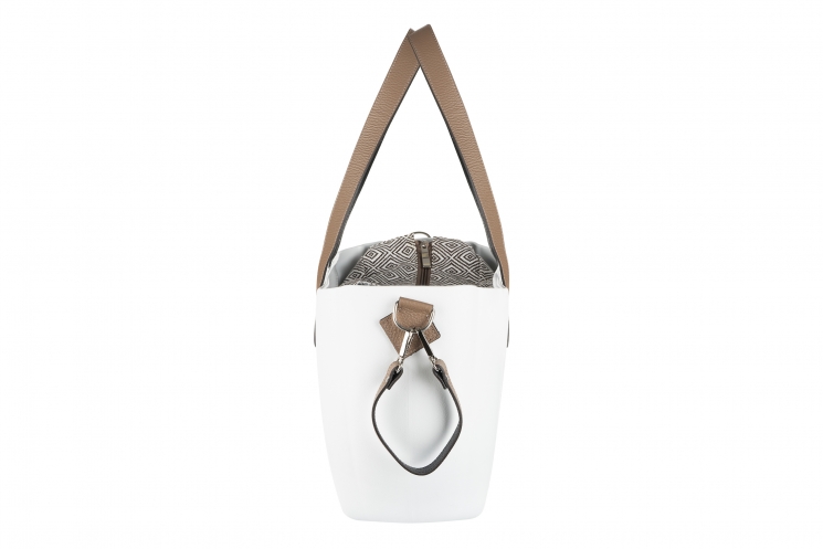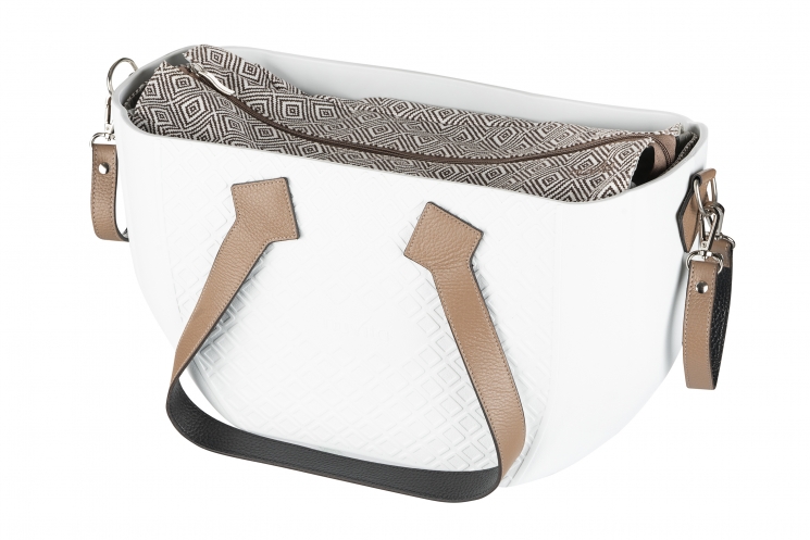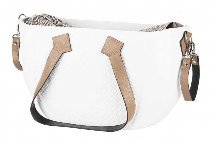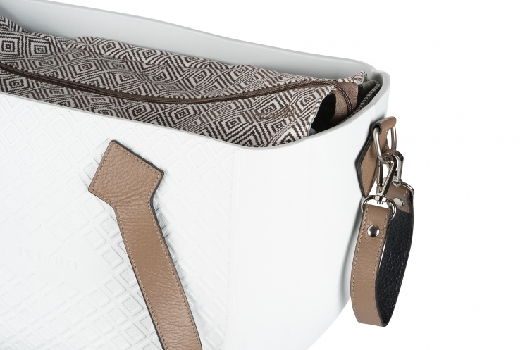 Опис Сумка Nuvita MyMia ручки шкіра, килимок, ремені для коляски, біло-коричневий