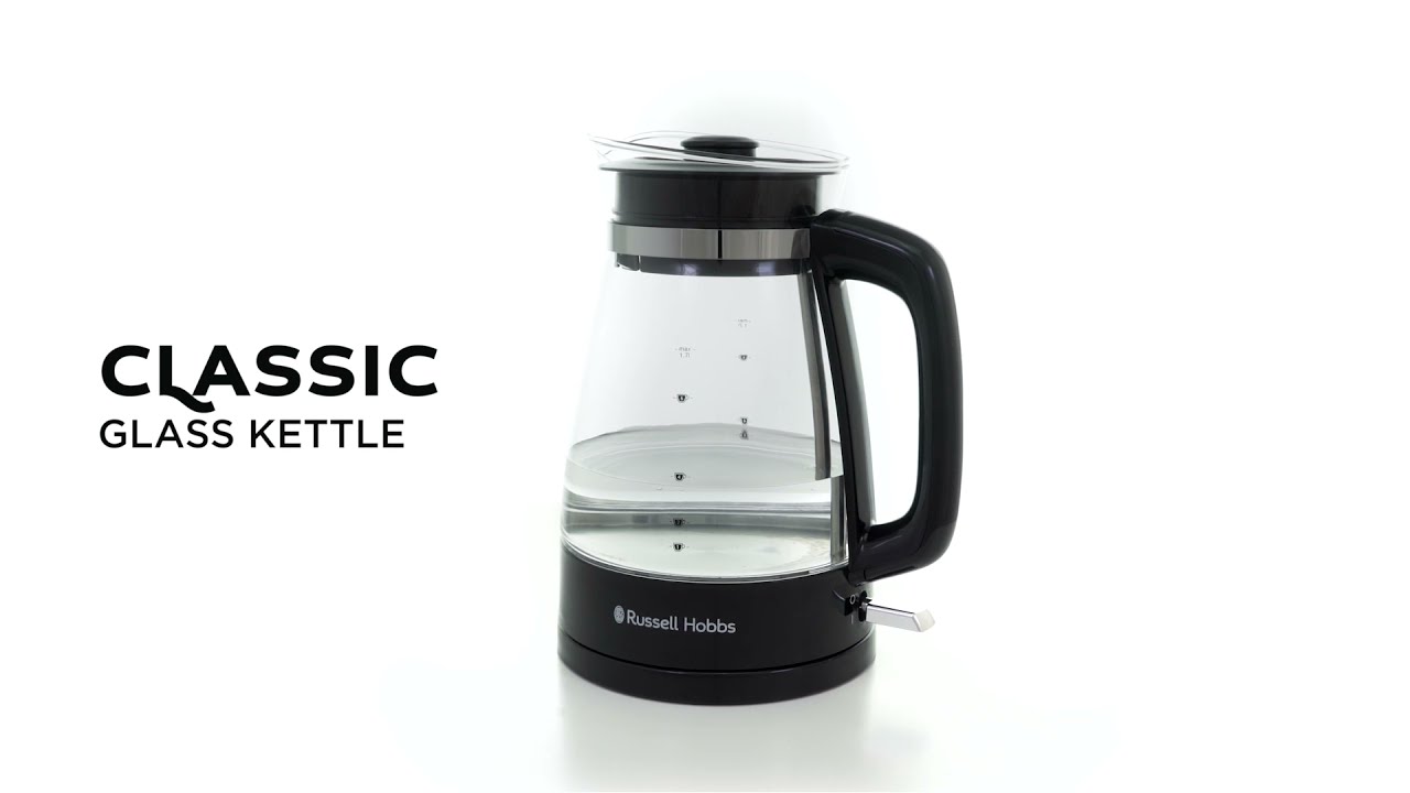 Опис Електрочайник Russell Hobbs Hourglass 1.7л, скло, підсвічування, чорно-сріблястий