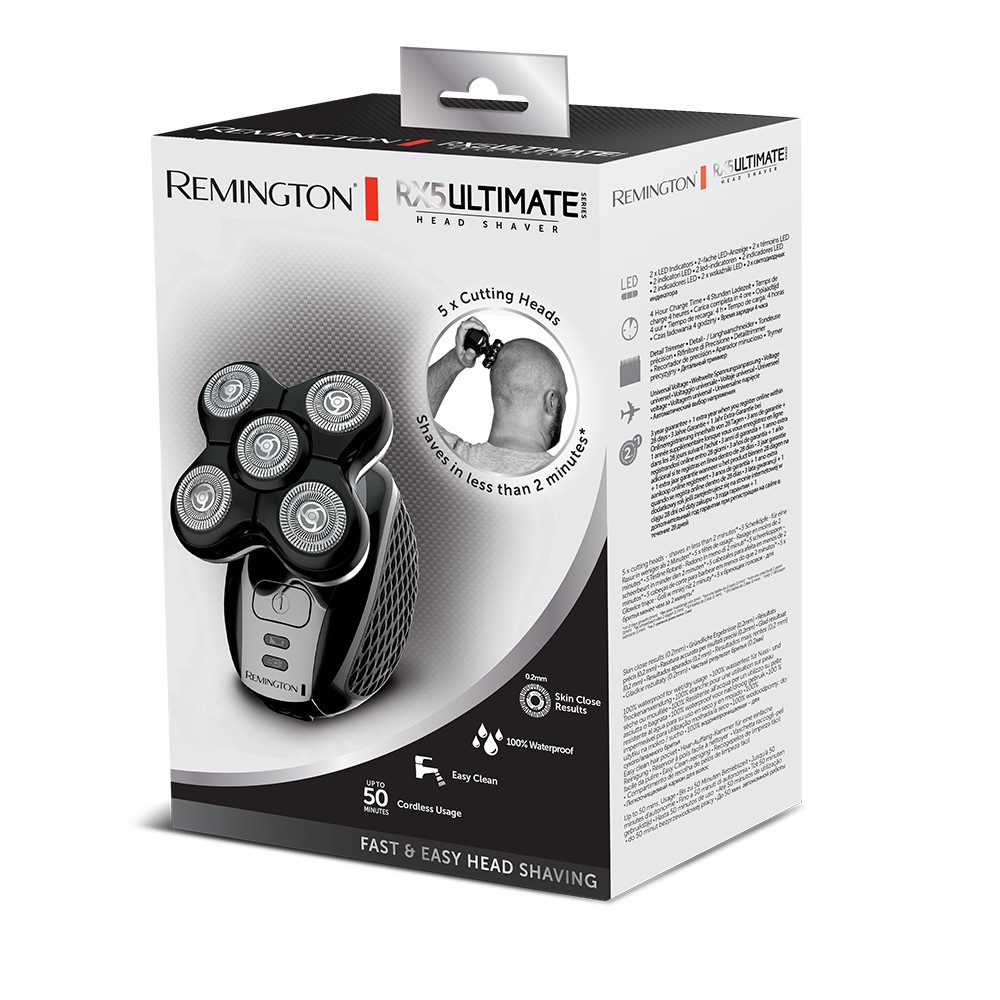 Бритва для голови Remington Ultimate Series RX5 розроблена спеціально для користувачів, які віддають перевагу гладко поголеній голові без складних процедур. Конструкція з п’ятьма ріжучими головками дозволяє обробляти велику площу за один прохід і скорочує загальний час гоління.