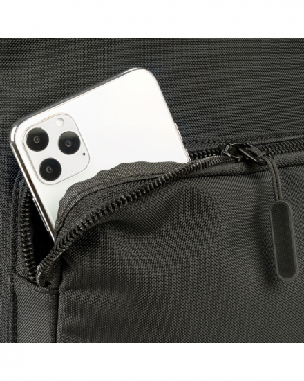 Так само в спинці вбудований ремінь-фікстатор, для розміщення рюкзака на телескопічною ручці чемодана, і потайну кишеню (антизлодій).