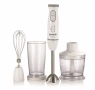 Тип пристрою: блендер; Потужність: 560 Вт; Кількість швидкостей: 2; Об'єм чаші: 0.5 л; Конструкція: дротовий, ручний; Насадки: ніжка-блендер, віничок, чаша; Функції: пюре; Колір: білий;