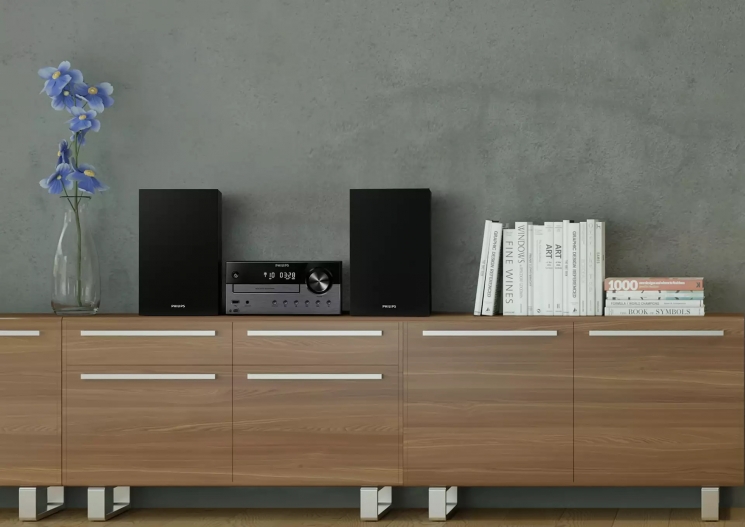 Ця мікросистема, що живиться від джерела змінного струму, чудово виглядає в будь-якій кімнаті. Діапазон передавання через Bluetooth становить 10 метрів, а через роз’єм USB можна заряджати інтелектуальні пристрої. Завдяки простому й зручному пульту дистанційного керування основні функції завжди будуть у вас під рукою.