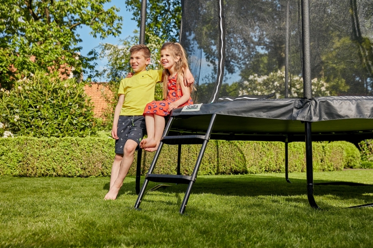 Сталевий каркас міцного батута Salta Comfort Edition виконаний з оцинкованої сталі з чорним глянцевим покриттям. Конструкція сталевого верхнього кільця утримує захисну сітку в натягнутому положенні, що дозволяє м'якій сітці з дрібними осередками надійно захищати дітей і дорослих від падіння. Крім того, батут оснащений спеціальним захисним поролоновим матом товщиною 20 мм і шириною 29 см, що покриває оцинковані конічні пружини системи батута і захищає від попадання між ними ніг і рук під час стрибків. Двостороння блискавка забезпечує легкий доступ всередину батута і дозволяє легко закривати Salta Comfort Edition з внутрішньої сторони.