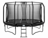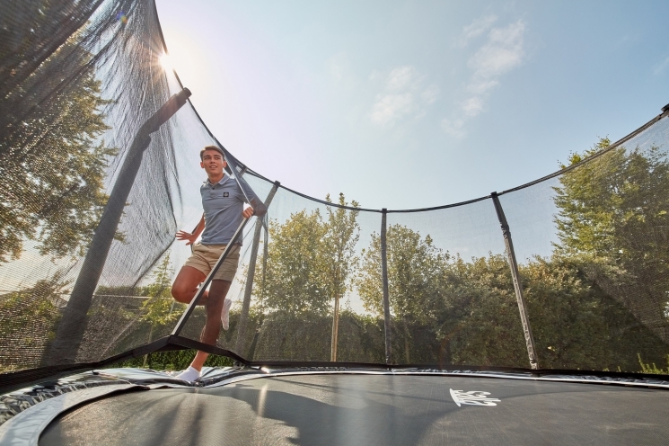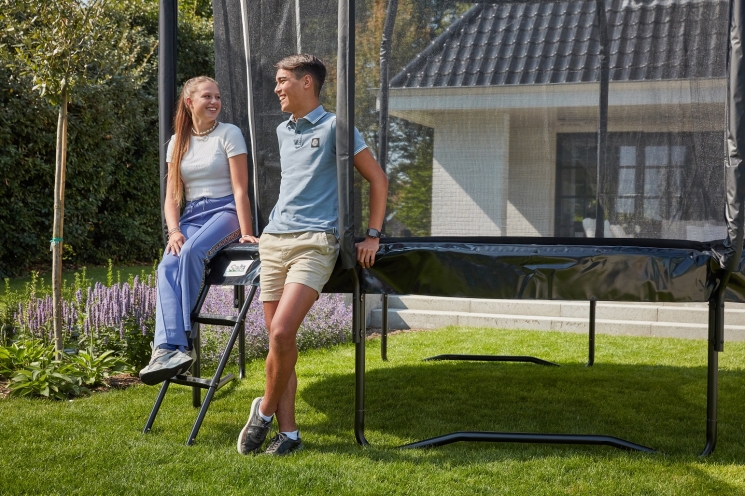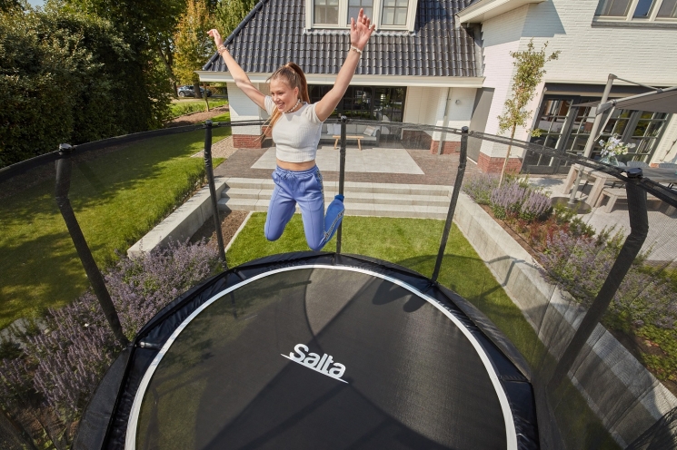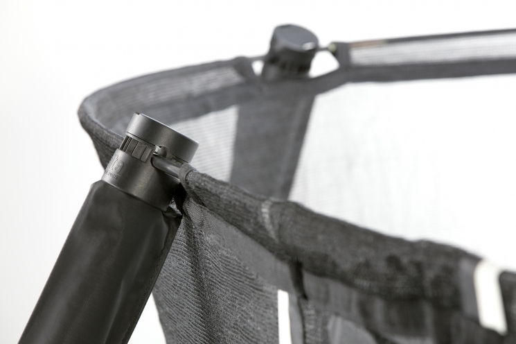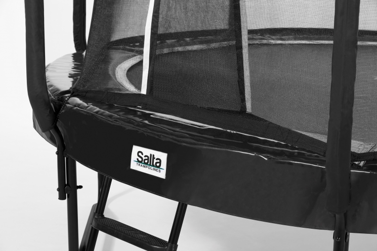 Батути лінійки First Class оснащені унікальною товстою оцинкованою чорною рамою з матовим покриттям що забезпечує надзвичайну міцність конструкції. Прекрасний захисний мат має розкішний зовнішній вигляд і забезпечує високий рівень захисту від травм завдяки своїй товщині в 0,76 мм. Дана модель батутів має в комплекті додаткові ступені, що дозволяють легко і зручно заходити всередину. Salta First Class має дуже широку захисну подушку, а високоякісний матеріал стійкий до ультрафіолетових променів. Захисна сітка батута виготовлена з високоякісного матеріалу з дрібними осередками стійкими до сонячних променів і має додатковий м'який захист навколо стовпчиків каркаса, що забезпечує ще більший захист і безпеку використання. Salta First Class відповідає останнім діючим стандартам безпеки! Сталева конструкція верхніх напрямних має надійну фіксацію з нижньою рамою за допомогою суцільних гвинтових з'єднань. Це забезпечує стійкість і міцність всієї конструкції батута. Під час стрибків рама не рухається і не хитається, а тому є надзвичайно безпечною і тихою!