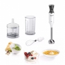 За допомогою універсального подрібнювача такі інгредієнти як зелень, горіхи, м'ясо та цибуля подрібнюються за кілька секунд. За допомогою вінчика Ви можете збивати яєчний білок та легкий крем для десертів, замішувати тісто для млинців.