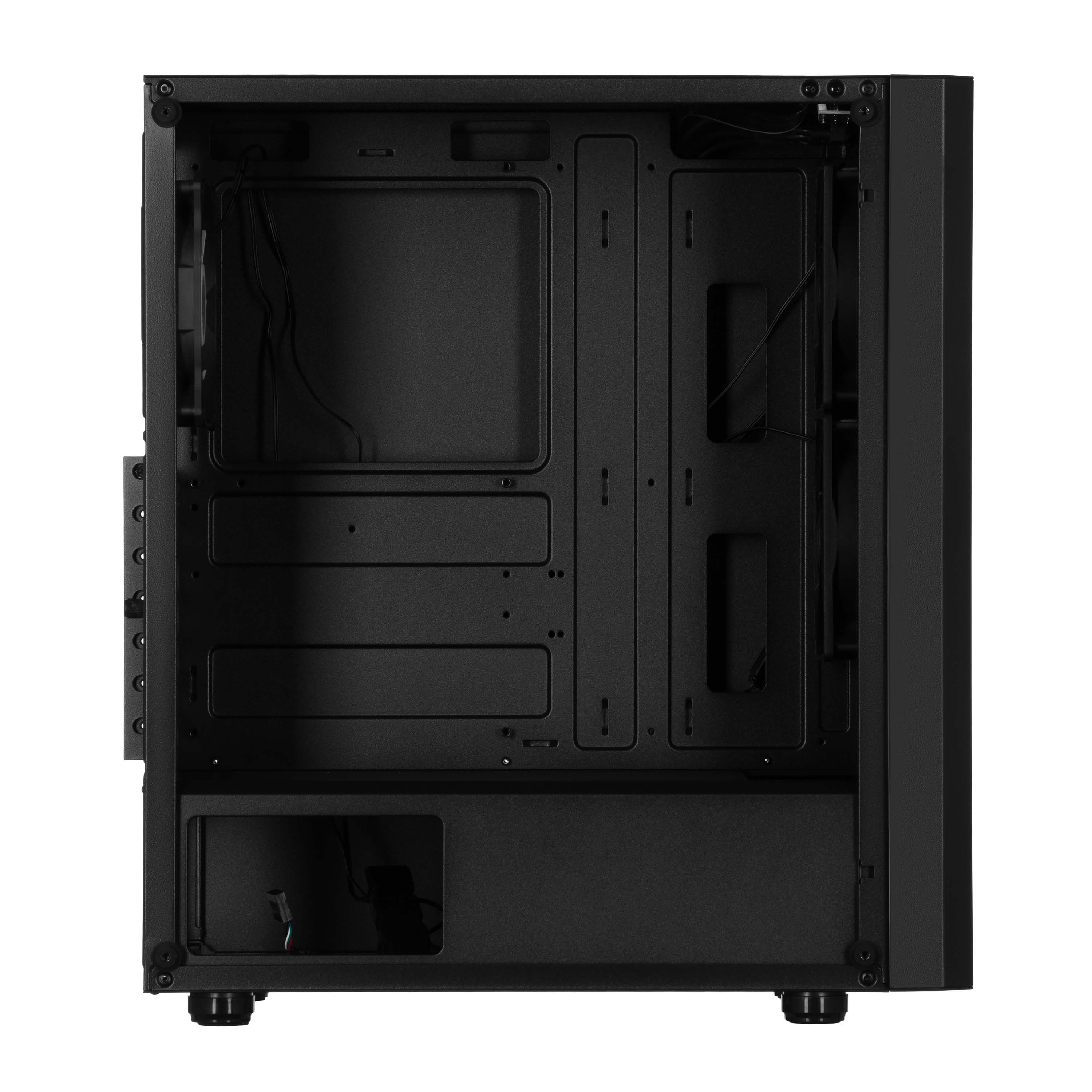 Матеріал корпусу - сталь 0.5 мм, бічна панель із 4мм загартованого скла. Типорозмір корпусу Mid Tower – це сумісність із материнськими платами ATX, Micro ATX, Mini ITX. Корпус без блоку живлення Користувачеві надається можливість самостійного вибору джерела живлення залежно від рівня системи, що встановлюється в нижній частині корпусу.