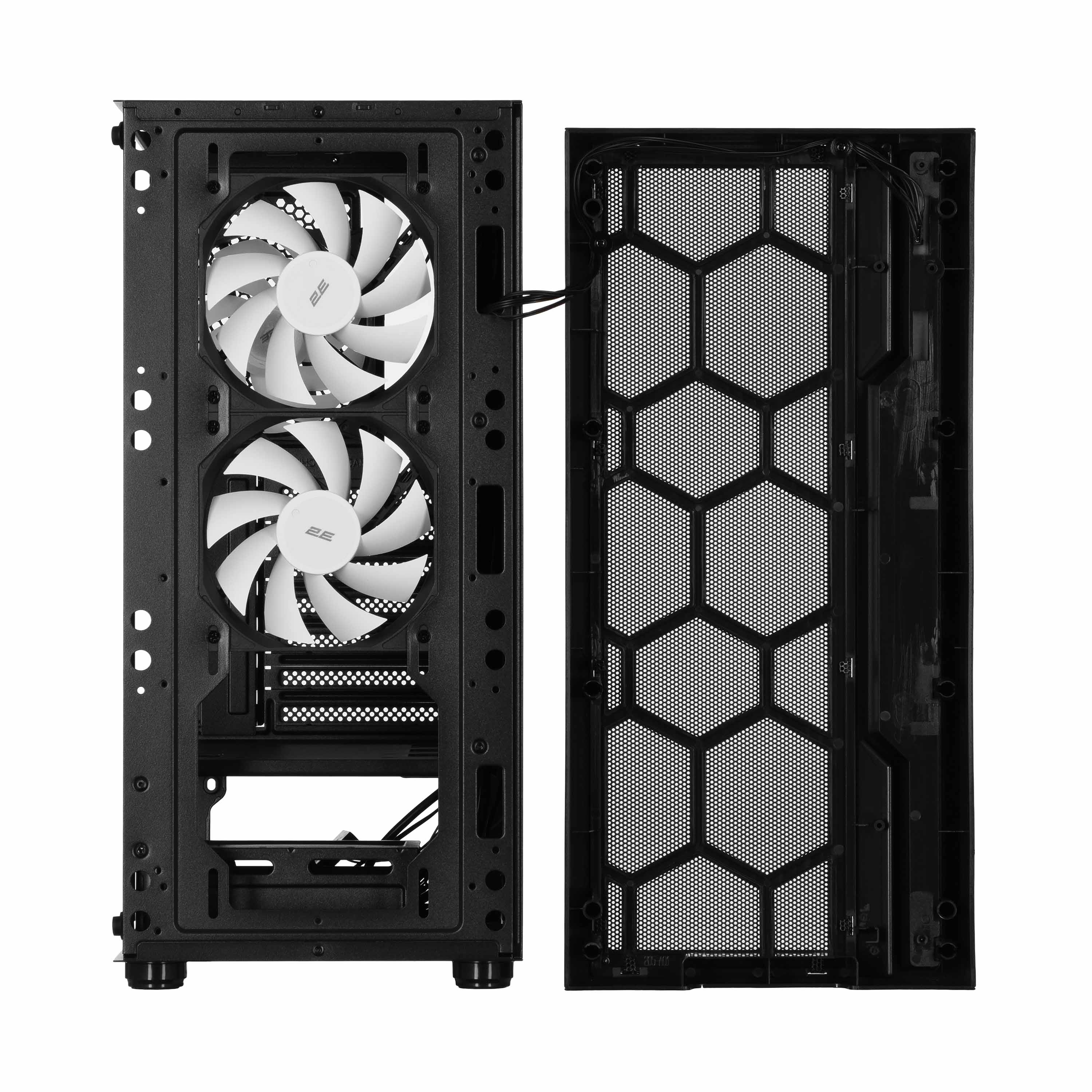 2E GAMING SPERO G2052 підходить для складання домашнього ПК та потужної ігрової системи, має стильний дизайн та продуману вентиляцію. Максимально можлива довжина відеокарти – 345 мм. Корпус надає можливості монтажу достатньої кількості накопичувачів та численних плат розширення (7 слотів розширення). Передбачено встановлення 6-ти вентиляторів та охолодження для процесора висотою до 165 мм.