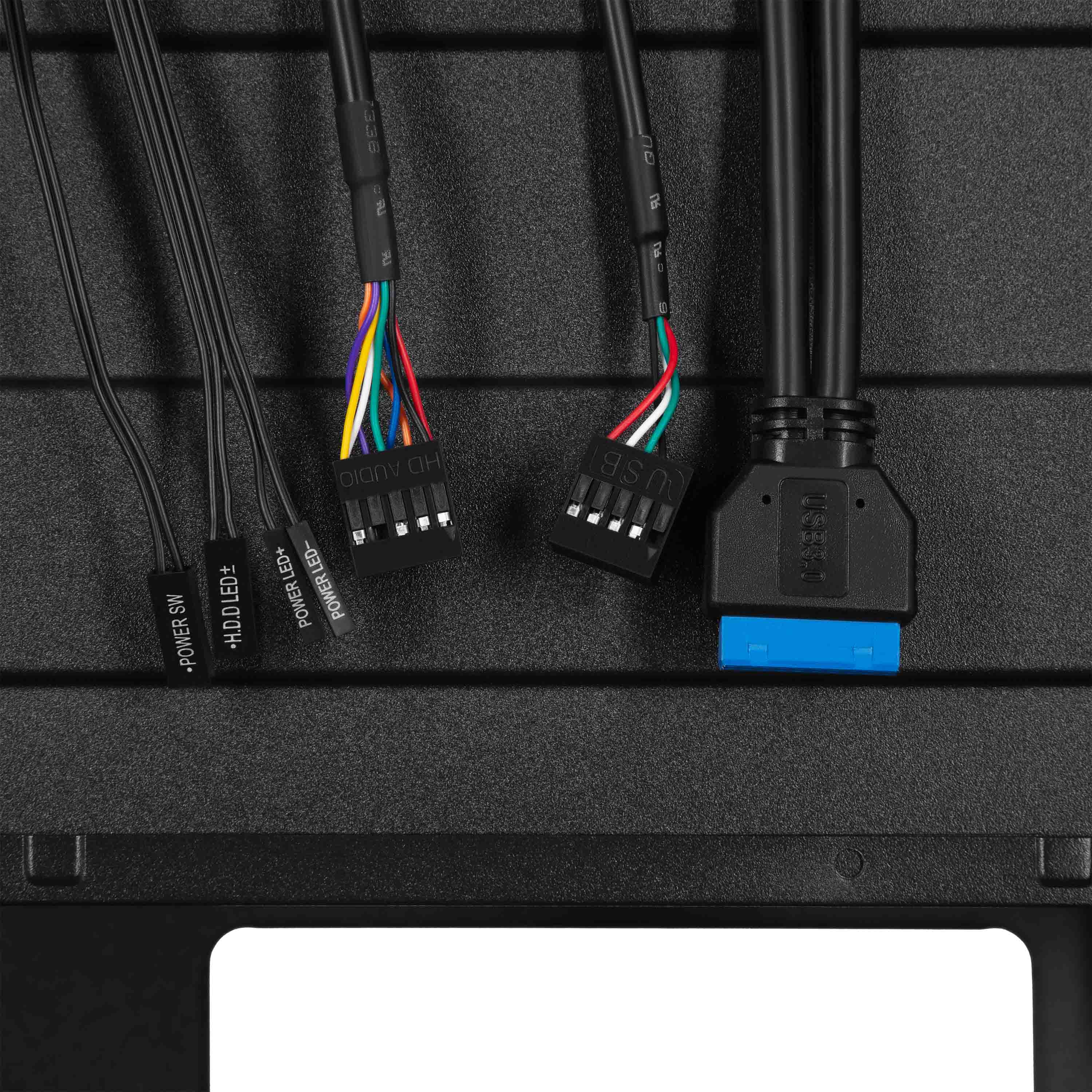 Корпус адаптований до можливості монтажу системи охолодження рідини на передню панель – радіатори 120/240/360мм, на задню – один 120мм радіатори, додатково передбачено простір для акуратного розміщення кабелів. На верхній панелі знімний пиловий магнітний фільтр.Для підключення, керування та контролю за комп'ютерною периферією та підсвічуванням, в арсеналі корпусу є роз'єми 2xUSB 3.0, 1xUSB 2.0, HD AUDIO+MIC, кнопки та індикатори Power, Reset, Power LED, HDD LED.